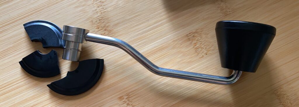 ある日、いつものように棚からミルを取るとなんとハンドルの蓋が欠けてるじゃないですか(泣)